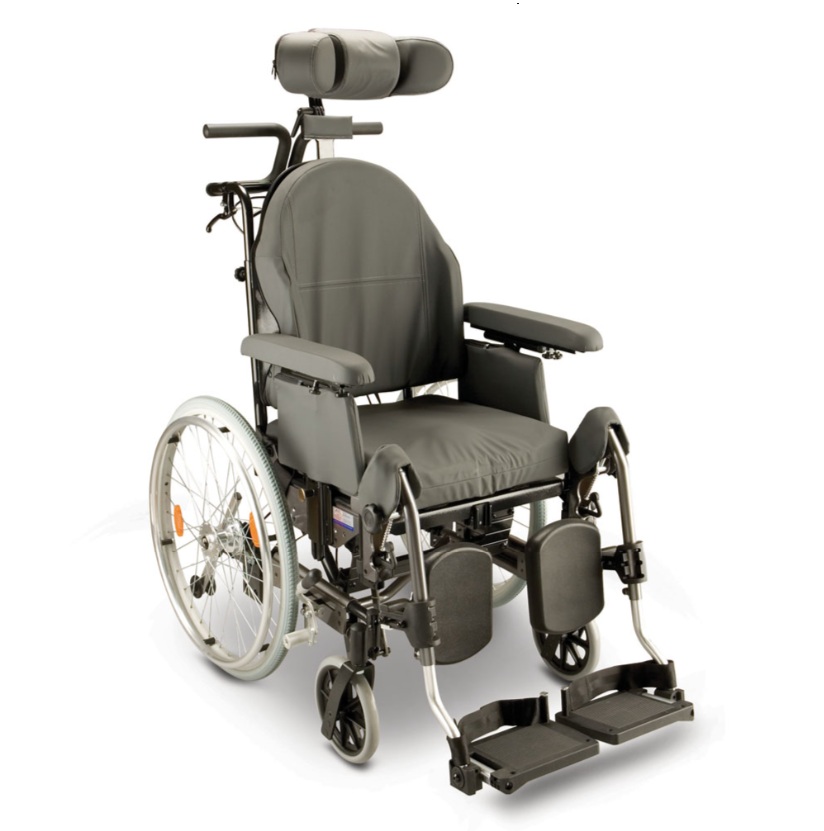 - Gas assisted, tilt-in-space and recline functions provide optimum postural positioning